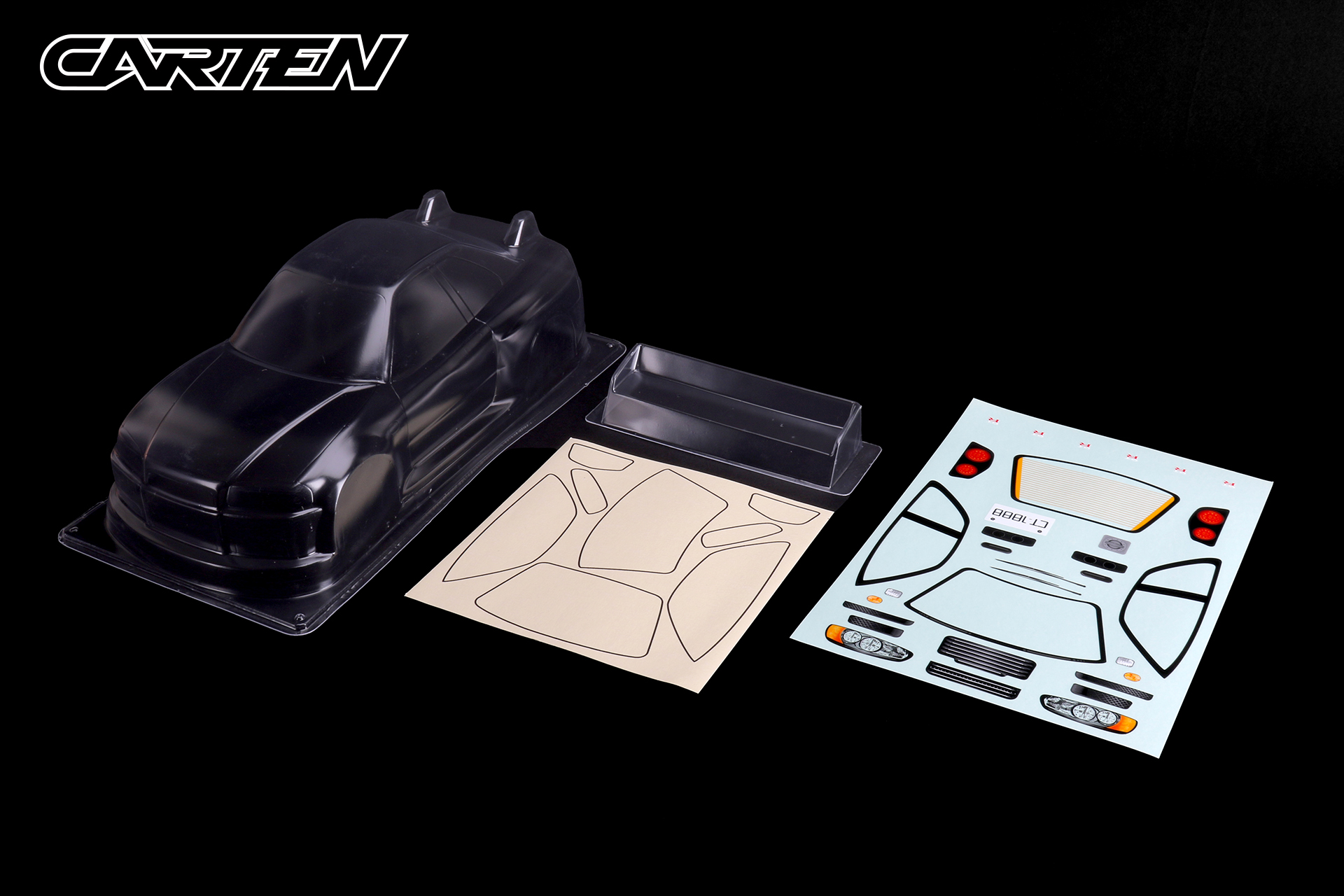 This is the Carten 1/10 M chassis Body in Clear lightweight material. The NBA813 Carten R34 body shell comes with 210mm wheelbase and fits to all of M210 chassis!